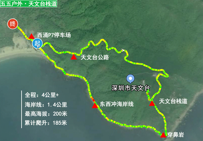 答:天文臺難度半星,屬休閑級路線,全程4-5公里,海岸線長1.4公里最高海拔200米,累計爬升185米,起終點均在西沖停車場,小孩、老人都能參加。若走不了,可以上到天文臺后原路返回,或到海邊后自費快艇到西沖沙灘(50元/人)。