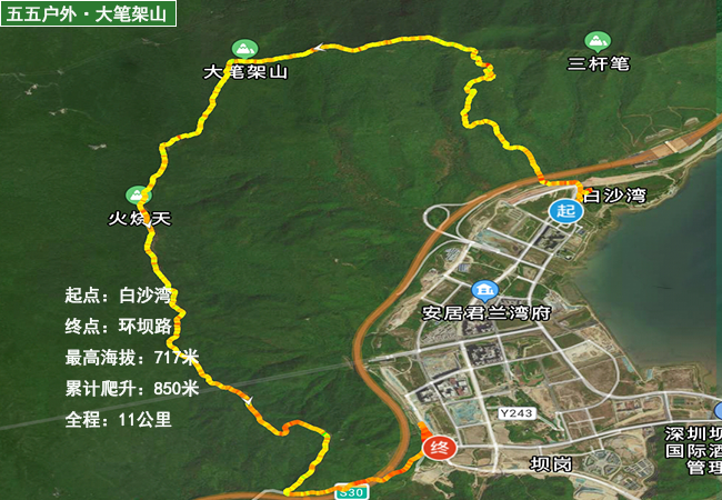 最高海拔717米,累計爬升850米,全程11公里