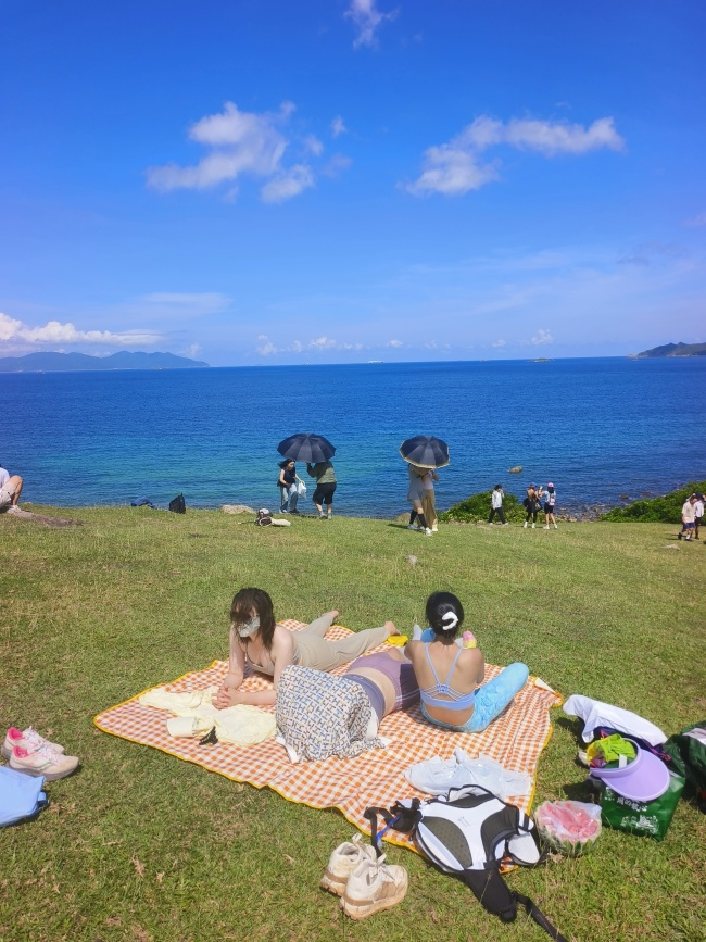 塔門島,被譽為“香港小瑞士”。島上有大片的草地,與碧海藍天相互映襯,形成如漫畫般的美景。島東的大草坪是露營勝地,晚間適合觀星,清晨可賞日出及西貢西部風光。