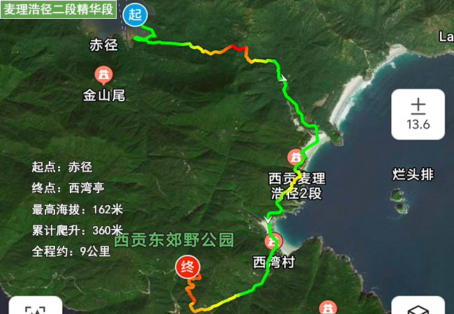 途經咸田灣、西灣四疊潭、西灣沙灘、西灣山,